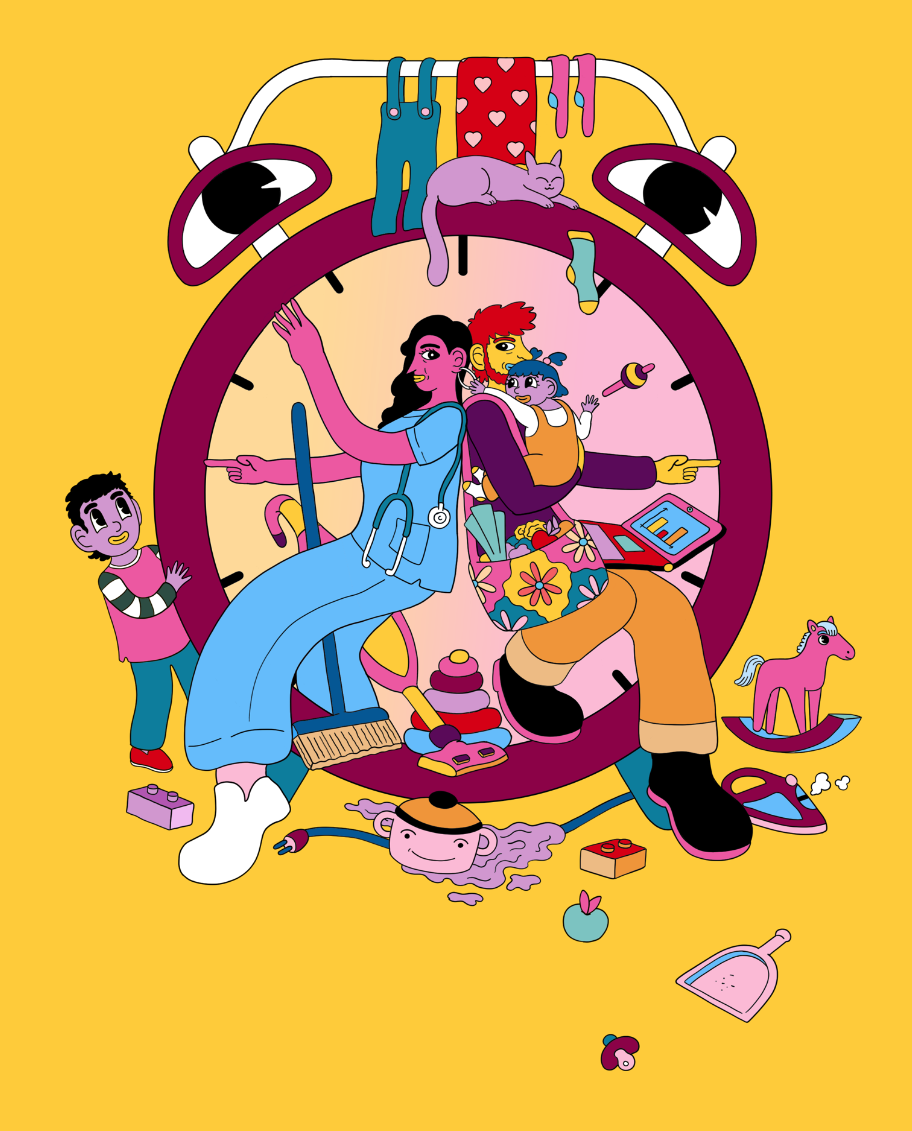 Illustration for the Friedrich Ebert Foundation for the study “Supporting Parents in the Rush Hour of Life – Dynamic Family Working Time.”